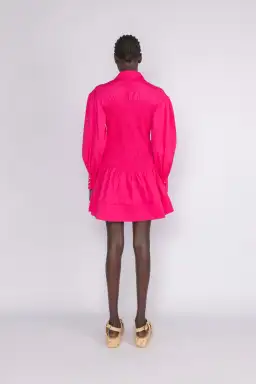 The Smith Mini Dress is the perfect pop of fun finished in a show-stopping Raspberry shade. Versatility is encouraged through traditional shirting accents like a button up front and collared neckline.