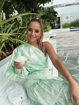 SWF Boutique One Shouldered Crop and Layered Skirt Set Force Green Size 8