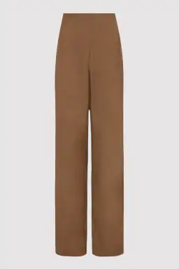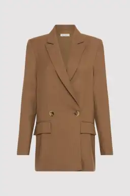 Timeless tailored suit with relaxed fit. Includes a Double Breasted Wool Blazer with pockets and button fastening and Wide Leg Wool Pant Cuff detailing and zip fastening at the centre back of pants. Capturing the essence of quintessential 90s power suiting. Crafted from a luxurious truffle coloured wool. Flexible on time off loan, please reach out to discuss.