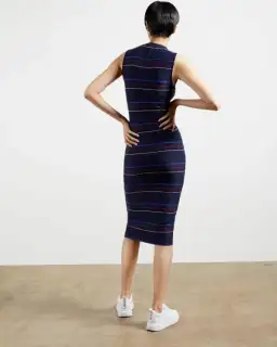Ted Baker Erlo Striped Sleeveless Midi Dress In Navy In Size 1/Au 8