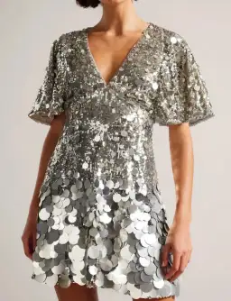 Ted Baker Silver Estelli Embellished Cape Woven Mini Dress Sequin Size 8