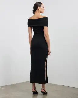 The Toledo Dress is a masterclass in effortless elegance. The body-hugging silhouette and off-shoulder design will upgrade your style.