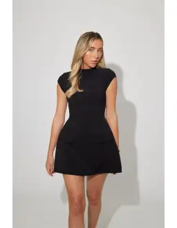 "This timeless piece is chic to the core. Our iconic cap sleeve in this jet black iteration has effortlessly become an Odd Muse favourite, adorned with a flattering high neck and signature cinched waist.