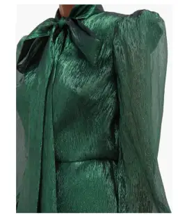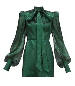 The Vampire's Wife The Pussybow Plissé Silk-Blend Lamé Mini Dress Dark Green Lame Size 10