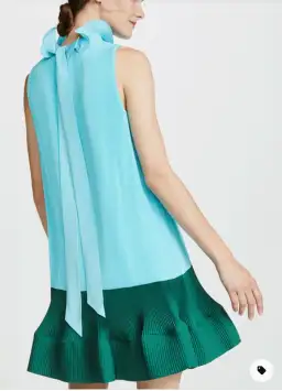 Tibi Camellia Pleated Colorblock Ruffle Dress Blue Size 4