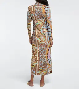 Add pieces with artful visual interest to your edit, like this midi dress from Tory Burch. Made from a form-fitting technical fabric, the design features a scrolling vintage-inspired print and a mockneck.