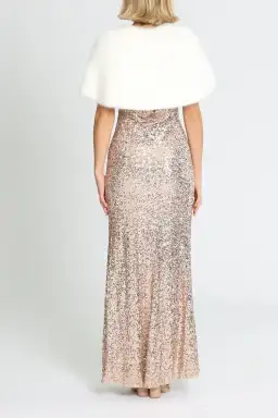 Elevate your wedding season style with Unreal Fur's Love Me Tender Capelet in Ivory. This luxurious capelet showcases a cropped length and graceful draped shoulders. Perfect for formal occasions, it's easy to wear with a concealed hook and eye closure and lined with soft faux fur.