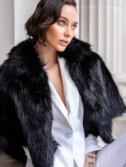Luxurious and chic, this gorgeous cape is made from the most premium faux fur and features a wide collar with a concealed hook & eye closure in the front.