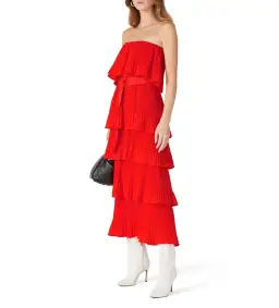 Essentiel Antwerp Valentina Ruffled Midi Dress Berry Red Size AU 10