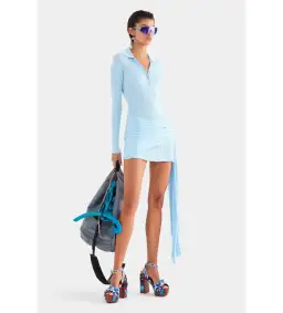 The Collared Knit Mini Dress in Powder Blue is the little mini dress your summer wardrobe needs. Knitted from a cotton-bamboo blend, this dress has a soft, ribbed finish that drapes beautifully over the body and has a tie detail at the waist. Wear day or night.