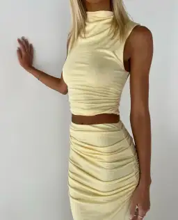 The Draped Jersey Set is the perfect set for warmer evenings. Cut from soft Jersey, the top features a softly draped cowl neckline, a gathered side seam detail and is fully lined. Wear yours with the matching skirt.