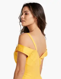 A mango moment not to miss - The Whirlpool Dress is here to make you feel amazing and turn heads at your next gathering. We adore the unique neckline with gathered detailing at the bust finished with additional straps. A true gasp moment is needed for this stunning number.
