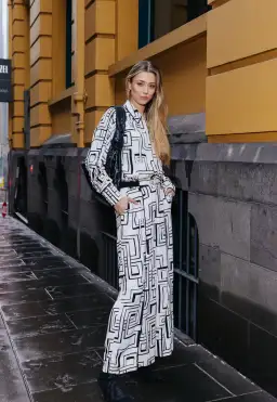 Aje Vortex Belted Shirt and Split Leg Pant Set Print