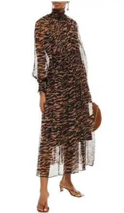 Zimmermann Wavelength Shirred Midi Dress Animal Print Size 0/AU 8