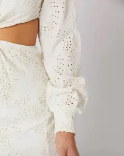- Finished in embroidered lace cotton. Invisible zip back closure