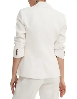 Witchery Linen Double-Breasted Crop Sleeve Blazer White Size 8