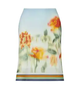 · Made in Melbourne, Australia.· White scallop elastic detailing.· Exclusive print design. · 90% Polyester, 10% Spandex.Fit· Designed to be form-fitting at mid-waist with a subtle a-line drape at the hem.· Mesh lining.· Fabric allows for minimal stretch and subtle sheerness.· Skirt is accessed through pull-over styling.Sizing· Item runs true-to-size with minimal stretch, select your normal size for a fitted look.