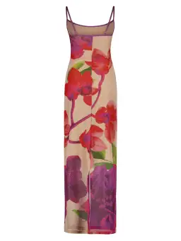 "Our delicate fully lined Slip Dress design encapsulates the very best of chic comfort. Featuring pink and coral hues in our best-selling floral print complimented by an accentuated waistline, adjustable straps, a rear split, all combined to softly skim the body."
