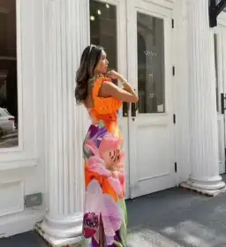 The Riviera Slip Dress is alluring and evocative with a sleek silhouette. This in-house originally designed print is encapsulated on our figure-hugging signature maxi that features adjustable straps, a round neckline, and a rear split.