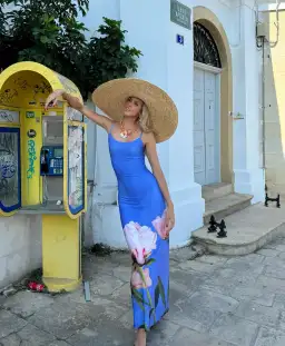 With Harper Lu Slip Dress Cobalt Peony Size S / AU 6