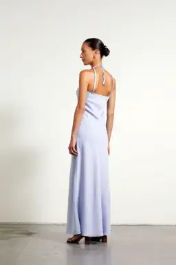 This dress is perfect for a special occasion, with adjustable shoulder straps and halter tie neck closure.