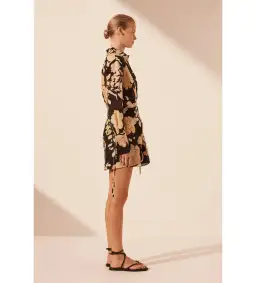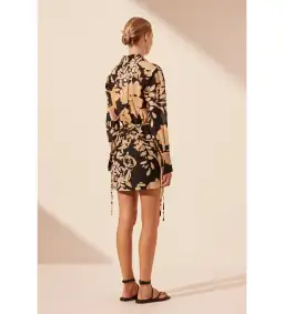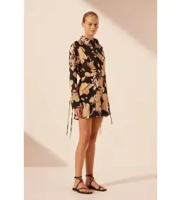Draped shirt mini dress with tie details in the Xenia floral print in a premium sheer linen TENCEL™ blend.