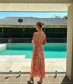 Ownley Zaliah Bias Backless Midi Dress Pink Floral Size 8