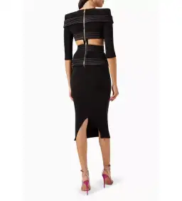 The Zhivago La Reine Noire dress is a true masterpiece. This midi-length jersey dress features stitched satin overlays and padded shoulders that create a powerful and chic look. The satin waistband adds a touch of structure to the design, making it both flattering and comfortable to wear.