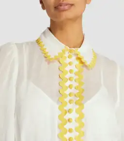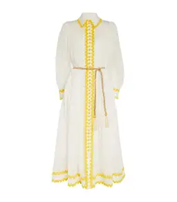 Delivered in a breezy, recycled polyester blend construction, ZIMMERMANN adds a decorative element to this belted Cira dress in the form of the vibrant yellow embroidered edge detailing.