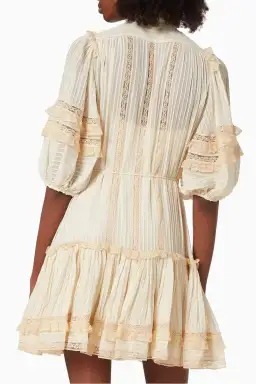 Zimmermann Concert Pintucked Mini Dress Cream Size 0/AU 8