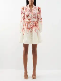 Zimmermann's 'Devi' dress is patterned with an intricate and romantic floral motif borrowed from the brand's swimwear collection. It's made from lightweight linen and has a nipped-in waist contrasted by a full skirt and billowy sleeves. A closer look reveals the buttons are crochet-knitted.