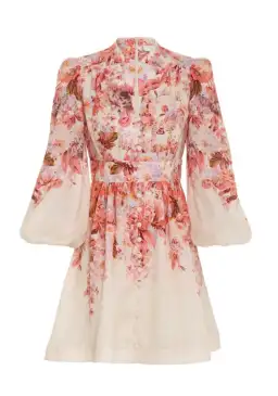 Zimmermann Devi Plunge Mini Dress Cream Floral Size 2 / AU 12