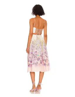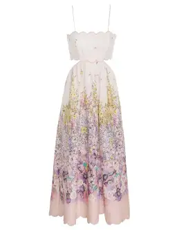 Zimmermann Jude Scallop Midi Dress in Peach Gradient Floral from the Summer Swim 2022 Collection.