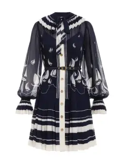 Zimmermann Pleated Tie Neck Mini Dress Moonlight Sailboats