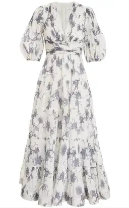 Zimmerman Pleated Midi Dress White & Blue Floral Size 6