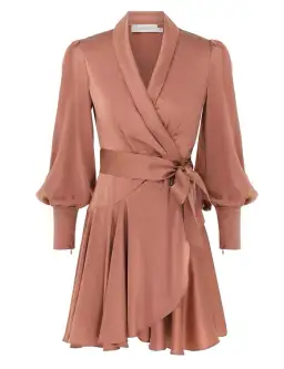 Zimmermann The Silk Wrap Mini Dress in Blush Size 0/Au 8