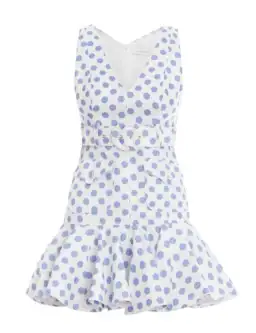 Zimmermann Super Eight Safari Mini Dress Ivory/Blue Dot