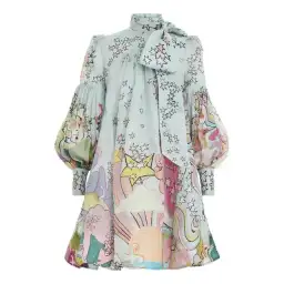 Zimmermann Concert Tie Neck Mini Dress Print Size AU 12