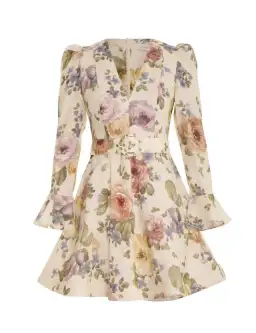 Zimmermann Luminosity Mini Dress Multi Floral Cream Size 1 / AU 10
