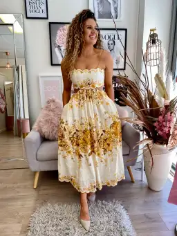 Zimmermann Aliane Scallop Midi Dress in Amber Floral