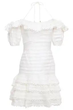 Zimmermann Allia Pintuck Off-the-soulder Ruffled Linen Mini Dress White Size 6