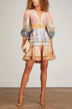 Zimmermann Anneke Lantern Mini Dress in Spliced