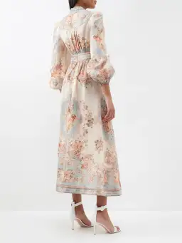 Zimmermann The August Plunge Midi Dress in Sky Blue Floral