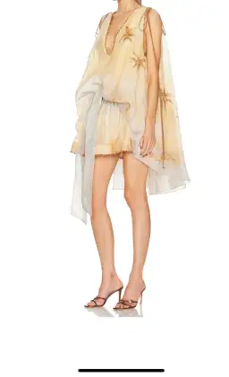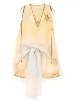 Zimmermann Balance Plunge Mini Dress Yellow Seascape Size 0p/AU 6
