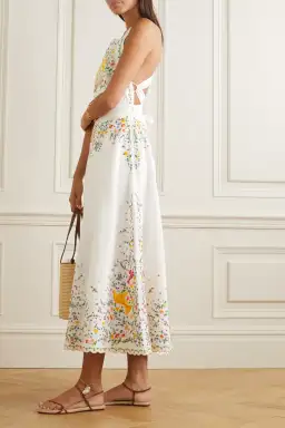 Zimmermann's white Carnaby dress is intricately embroidered with multicoloured wildflowers and birds. It's made from breathable linen lined in cotton voile and is outlined with a scalloped square neckline and crossover back ties before falling into a midi-length, A-line skirt. Wear it with anything from flat sandals to wedged espadrilles to convey the label's unwavering sense of femininity.