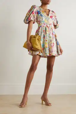 Zimmermann The Clover Panelled Mini Dress in Spliced Multi Floral from Resort Swim 2023 Collection.