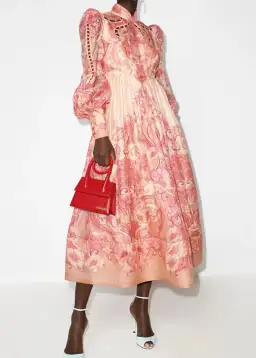 The Concert Poppy midi dress from Zimmermann perfectly captures the romantic flair synonymous with the label. A dreamy pink masterpiece delicately adorned with crystals, it's made from printed linen and silk organza and features voluminous puff sleeves.