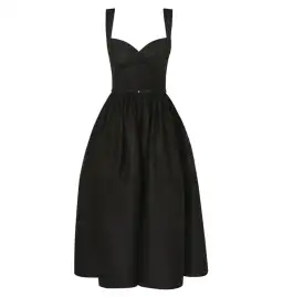 The Crush Picnic Midi Dress in Black from our Resort 2025 Collection, Crush. A silk linen midi dress featuring a criss-cross pleat on the bodice, adjustable straps with back bows; finished with boning along the front, side and back seam.