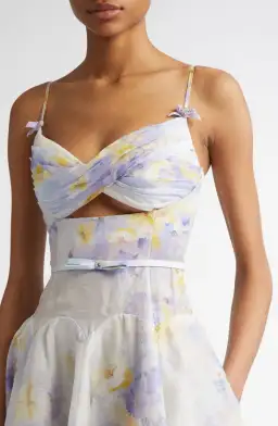 Zimmermann Crush Twist Front Midi Dress Lilac Floral Size 3 / AUS 14