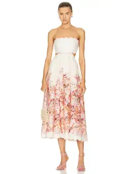 Zimmermann The Devi Scallop Midi Dress in Cream Floral Size 0 /Au 8